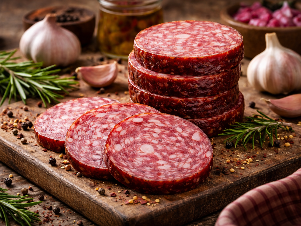 Unsere Suhre-Thaler bestehen aus bestem Schweinefleisch (Hals). Diese werden nach dem Wolfen, würzen und Formen zu einem Thaler auf rohen Holzbrettern getrocknet, bevor sie dem kalten Rauch ausgesetzt werden. Anschliessend ruhen sie in unseren Reifeschränken bis zur perfekten Reife.